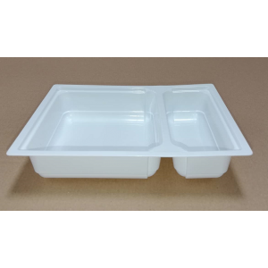 A termékek jellemzően fehér, fekete vagy sárga színű, 0,7-1 mm vastag, élelmiszeripari megfelelőséggel rendelkező PP fóliából készülnek, sugárzó fűtéses, automata préslégformázó gépeink segítségével. A dobozok azok magas hőmérsékleten történő hegeszthetősége miatt egy légmentesen záró dézsmazáras csomagolási egységet képeznek a fedélként szolgáló, leheletvékony tálcazáró, akár alumínium védőfóliával.